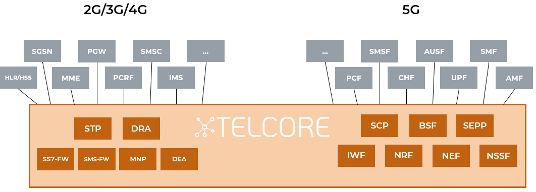 Универсальная телекоммуникационная платформа TELCORE - основа для всех элементов гибридного ядра сети 2G / 3G / 4G / 5G, важнейшего элемента виртуальной сетевой инфраструктуры, отвечающего за безопасность, надежность и производительность сетей операторов мобильной и фиксированной сети связи.